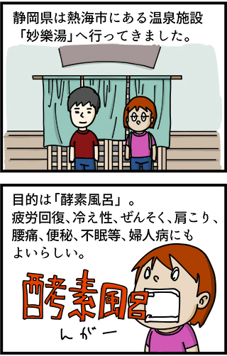 潜入!妙樂湯 2014年11月04日 「妙樂湯」建物入口。山奥にたたずむ木造建築の古びた風情がよいのです。 酵素風呂用の小屋へ続く通路。全体的に簡素ですが、オーナーのこだわりが感じられます。 とにかく汗が凄い出て、その後暫く止まりません。発酵成分から出る熱質が普通のサウナとは違うらしいで ... 続きを読む