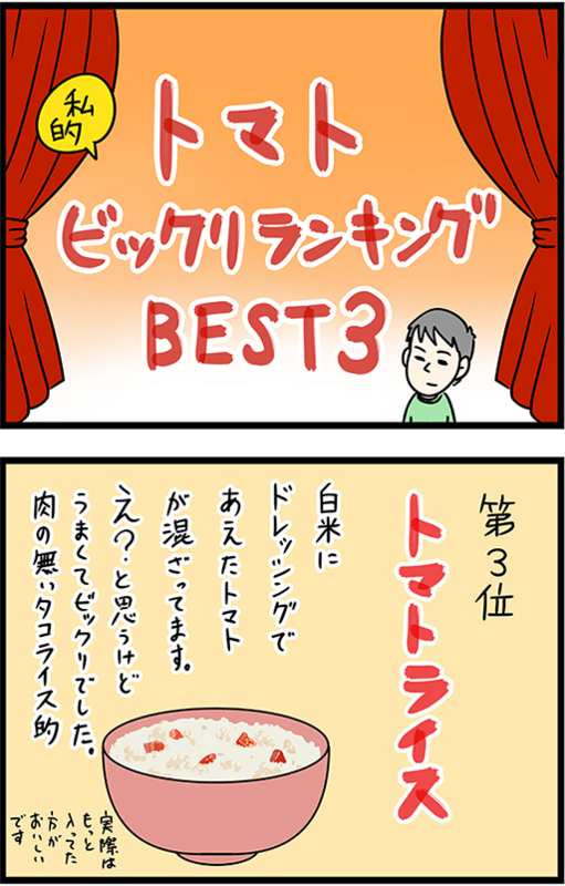 トマトビックリランキング 2015年01月26日 トマトが無いと生きていけないとまで言っておきながら、アレルギーという悲劇。 僕も昨日初めて聞いたので、ビックリしました。 もっともそれほどひどい症状ではなく、多少舌がピリピリする程度らしいので、気にせず食べているようでした。 最近は色んな症状に病名が細かく ... 続きを読む