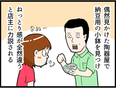 納豆用小鉢を買った! 2016年08月26日 地元のとあるシャッター街で、ふと目に入った陶器屋さんの店頭商品(有田焼が一つ500円とかでえらい安い)を見ていたら、ここぞとばかりに出てきた店主にいちおし商品を熱弁されました。 納豆用の小鉢。まずそういう物がある事自体知らなかったんですが、とにかく粘 ... 続きを読む