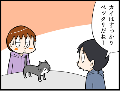 ネコとの不思議な距離感 2022年02月18日 すっかり嫁にべったりとなったカイなんですが、今さらになってかなりの甘えん坊だったことが分かりました。でも自分からくっつくのはいいのに、相手から近づくのはやや緊張するみたいで、特に顔を近づけられるのが嫌みたいです。もう3年目になるのに、今だに距離感が分から ... 続きを読む