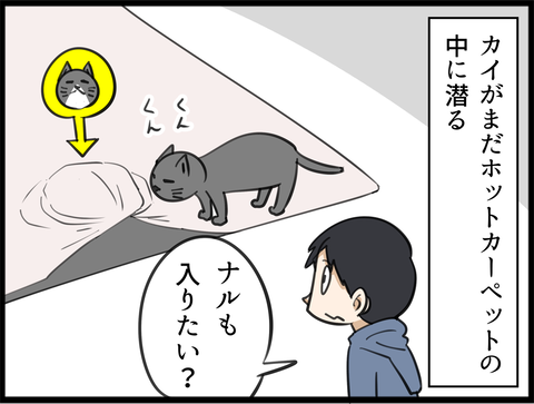 下剋上の予感 2024年04月28日 本当はナルもカイの真似をしてホットカーペットの中に入りたいんですが、入るたびにカイに追い出されてしまいます。いつかやり返してやろうと思ってたんでしょうか・・・ナルにけしかけられて、臨戦態勢のカイ。今後も白熱化しそうな気配がありますが、ホットカーペットはそ ... 続きを読む