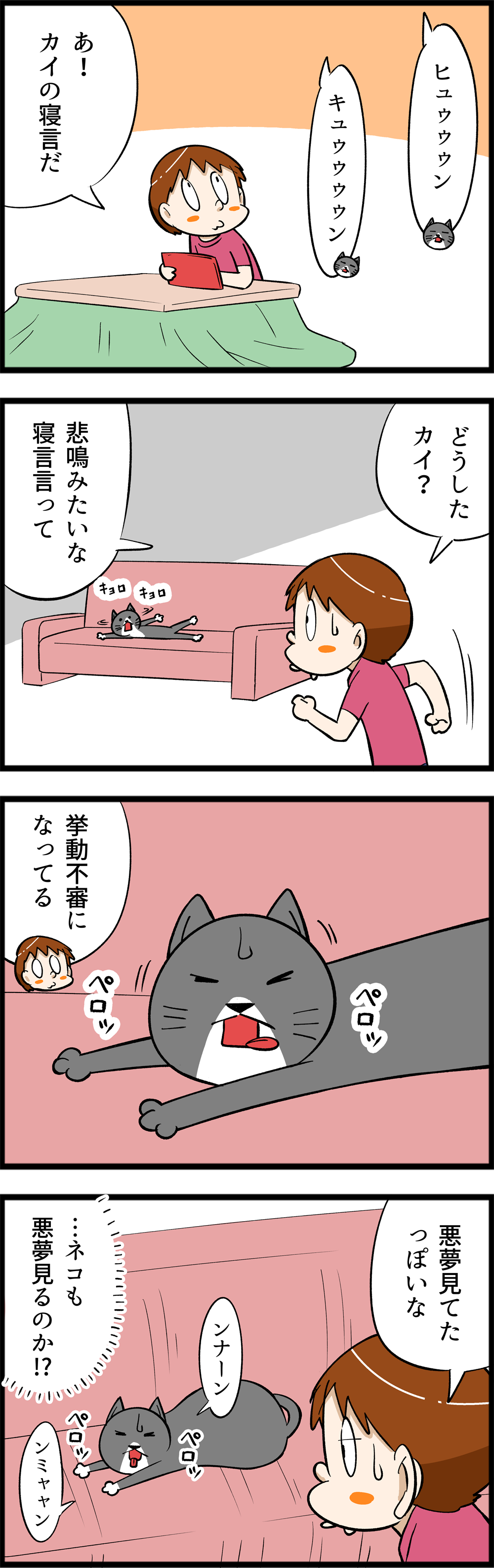 カイはよく寝言を言うんですが、その日は悲鳴のようなか細い寝言を言っていたそうです。
