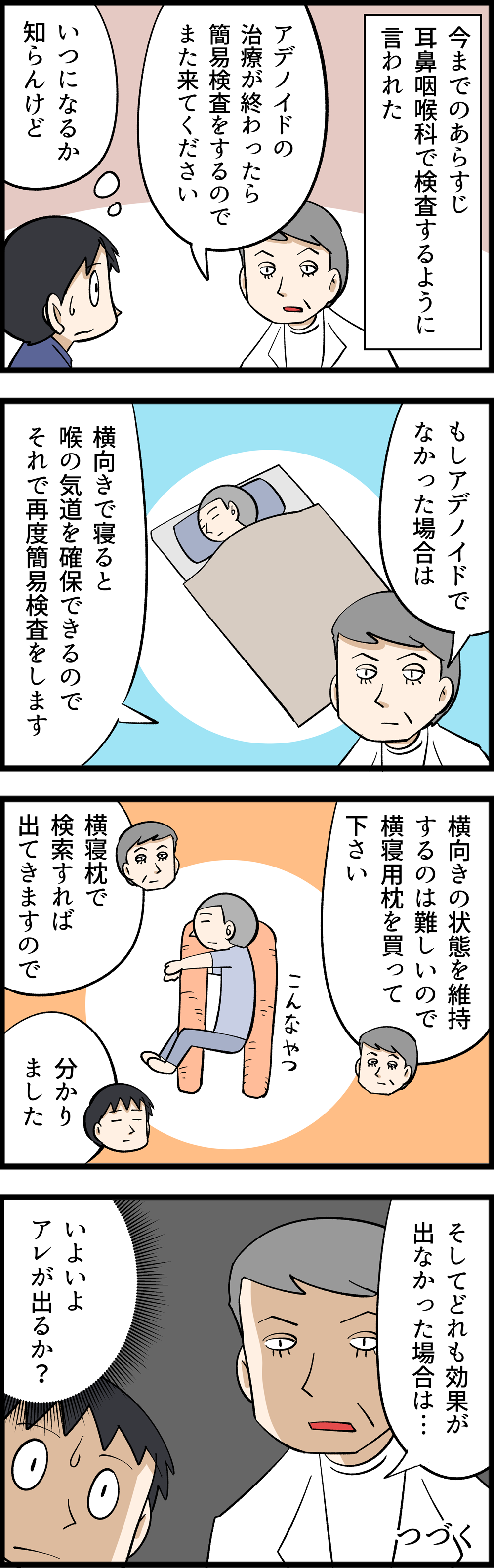 無呼吸症候群の検査結果④ 2024年07月28日 ということで、まずは耳鼻咽喉科へ行ってアデノイドの治療。もし違うなら横寝枕という優先順位で進める段取りとなりました。横寝枕なんてあるんですね。治療について少しずつ話が具体的になってきました。無呼吸症候群の検査を受けるまでの話です。時代劇のLINEスタンプを作りました。いつもブログランキングへのクリックありがとうございます!人気ブログランキングとても励みになっておりますので、よろしかったらポチっとお願いします! 「日々雑感」カテゴリの最新記事 タグ :#無呼吸症候群 < 前の記事次の記事 > コメント コメント一覧 (1) 1. たぬきち 2024年07月28日 12:55 お医者さんこええ~(._.) 0 jyajyayome がしました コメントフォーム 名前 コメント 記事の評価 リセット リセット 顔 星 情報を記憶 コメントを投稿する